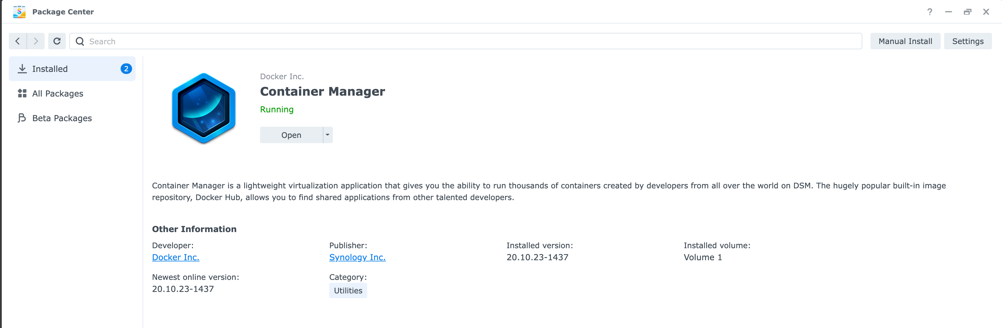 Ve výchozím nastavení, po nainstalování Container Manager sdílejí docker kontejnery stejnou IP adresu, jako samotný NAS. Problém je v kolizi portů, protože port 80 a 443 využívá NAS pro portál administrace. Řešením je vytvořit pro docker virtuální interface pomocí MAC VLAN Driveru